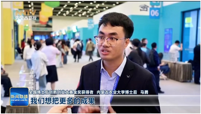 全国博士后创新创业大赛金奖获得者 内蒙古农业大学博士后 马腾 我们想把更多的成果来通过我们乳酸菌,通过我们比赛的渠道把它转化出来生成产品,真正服务百姓,让我们中国的乳企用上自己的菌。