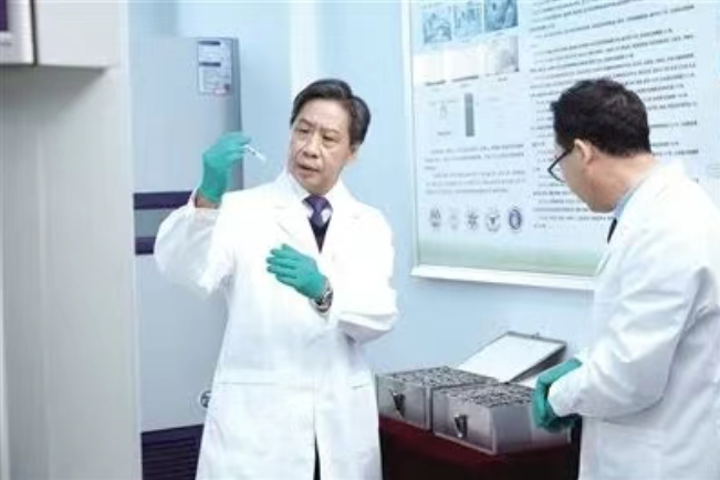 张和平教授(左)指导菌株入库编号。(受访者供图)
