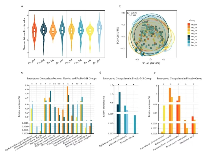 注:Pla为安慰剂组,Pro为益生菌组。