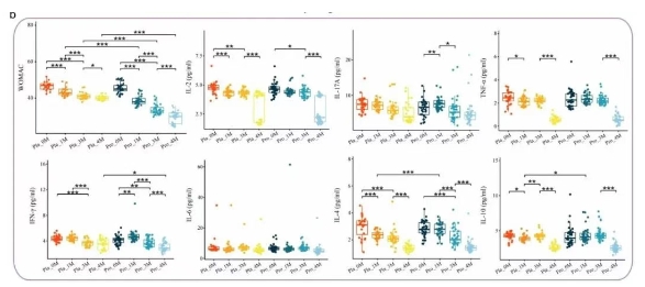 Probio-M8联合硫酸软骨素干预后,患者 WOMAC(西安大略和麦克马斯特大学骨关节炎指数)评分在干预1、3、4(随访)个月时,较安慰剂组分别降低了10.5%、17.6%、26.7%。在干预第1个月时抗炎细胞因子IL-4、IL-10水平较安慰剂组升高了16.8%、12.3%;4月时促炎细胞因子IFN-γ较安慰剂组降低了6.9%。