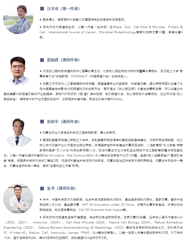 ● 2025年10月2日,内蒙古农业大学张和平、中国科学技术大学朱书、南京医科大学第二附属医院张发明、宁波热心肠科技传播研究中心蓝灿辉等在iMeta在线发表了题为“Shaping the future of probiotics, live biotherapeutic products, and fecal microbiota transplantation: 30 scientific recommendations from the CHINAGUT Conference”的文章。