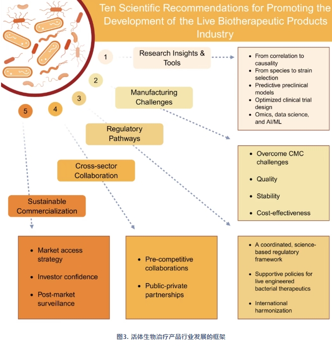 在研发初期就应制定全面战略,向支付方、医师和患者证明LBPs的临床与经济价值,并推动其融入现有医疗体系。市场准入是活体生物药面临的主要壁垒,获取医保报销和临床采纳构成重大挑战。价值证明不仅需要坚实的临床证据(疗效与安全性),还需包含卫生经济学结果、能否改善患者生活质量的明确数据,以及与现有标准疗法的对比数据。对医疗从业者开展活体生物药作用机制、疗效、安全性及适用场景的教育,对消除质疑、实现精准患者筛选至关重要。应尽早与支付方接洽,了解其证据要求并建立合理的定价与报销模式。以证据为基础、积极主动的市场准入策略与科研开发具有同等重要性。